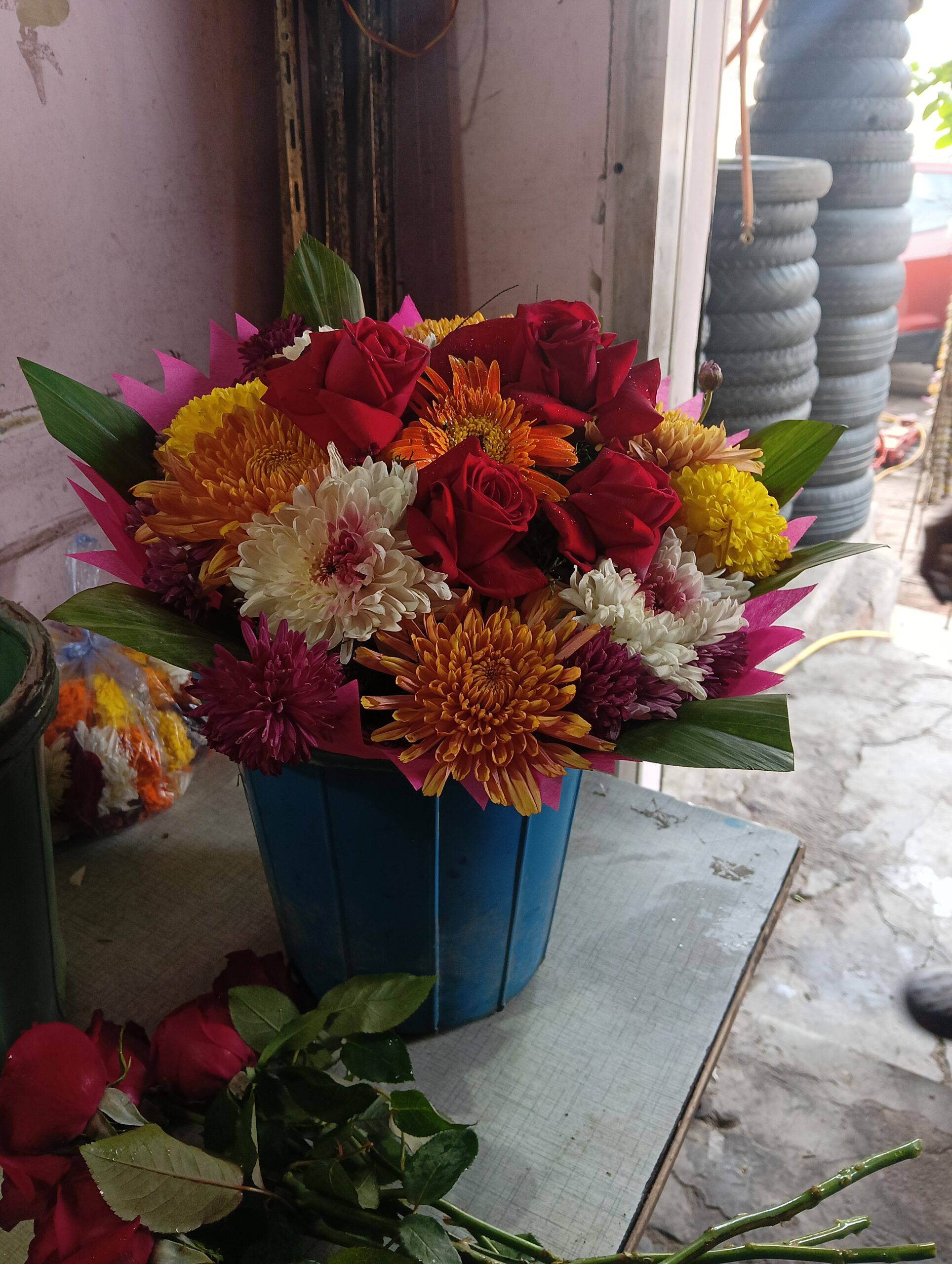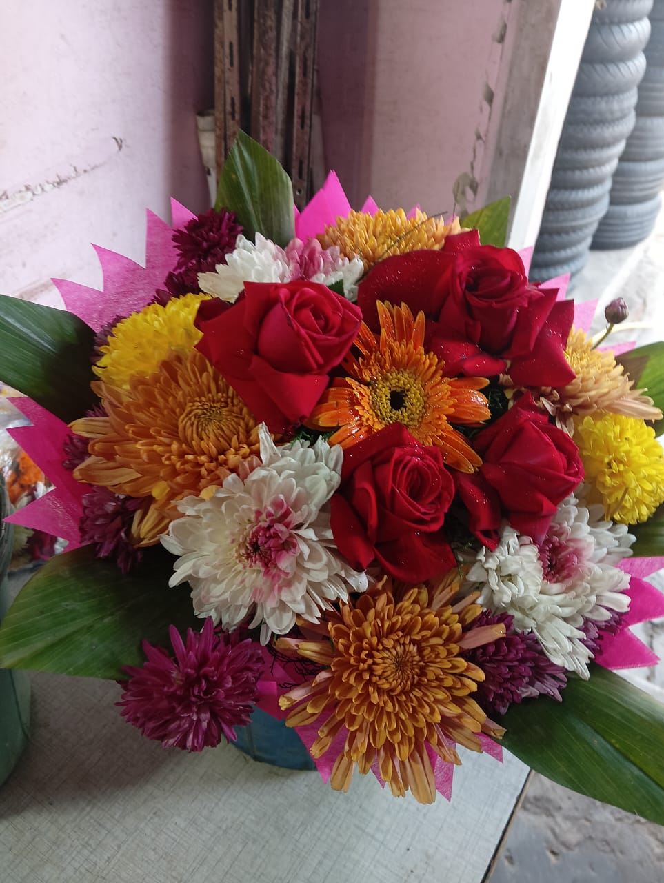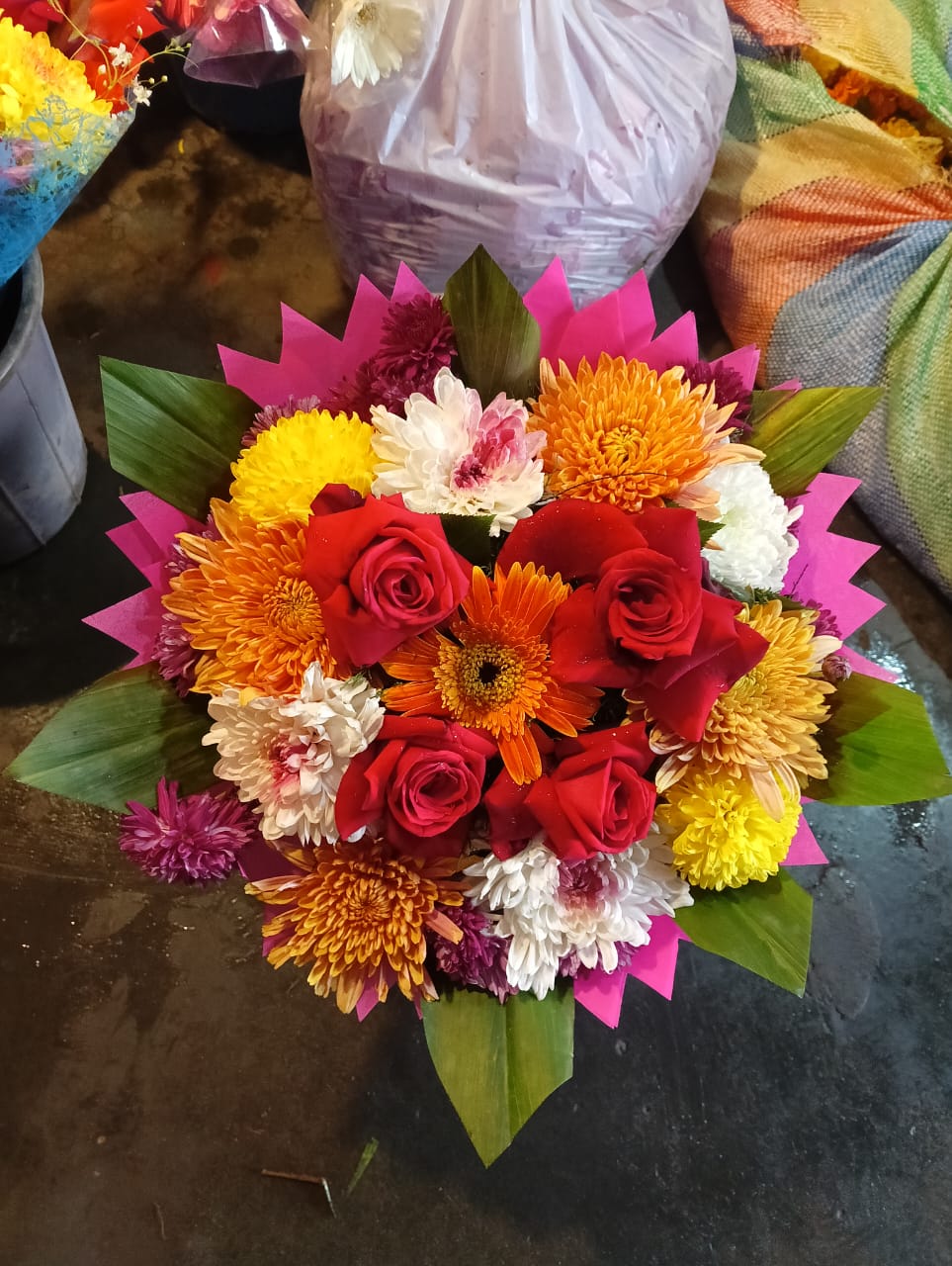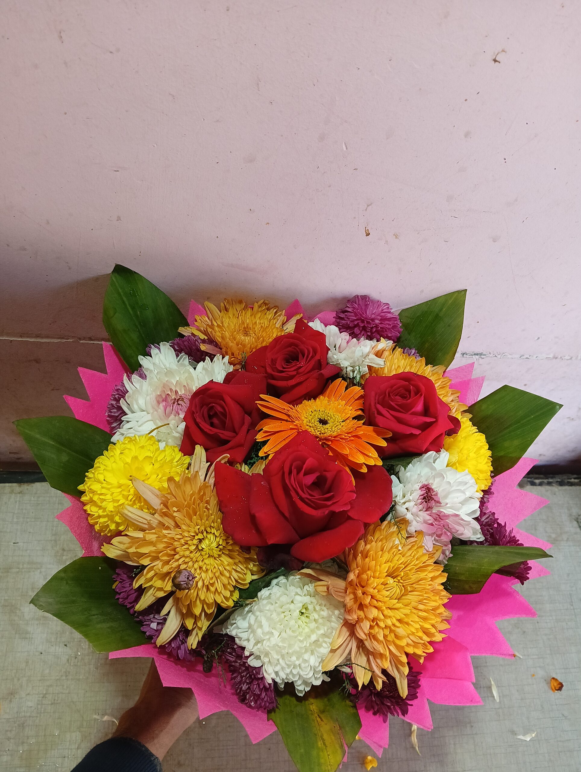 Add color and joy to any celebration with this premium mixed flower bouquet, beautifully crafted with fresh red roses and vibrant seasonal flowers. Designed in a round arrangement with decorative leaves and attractive wrapping, this bouquet is perfect for gifting on all special occasions.